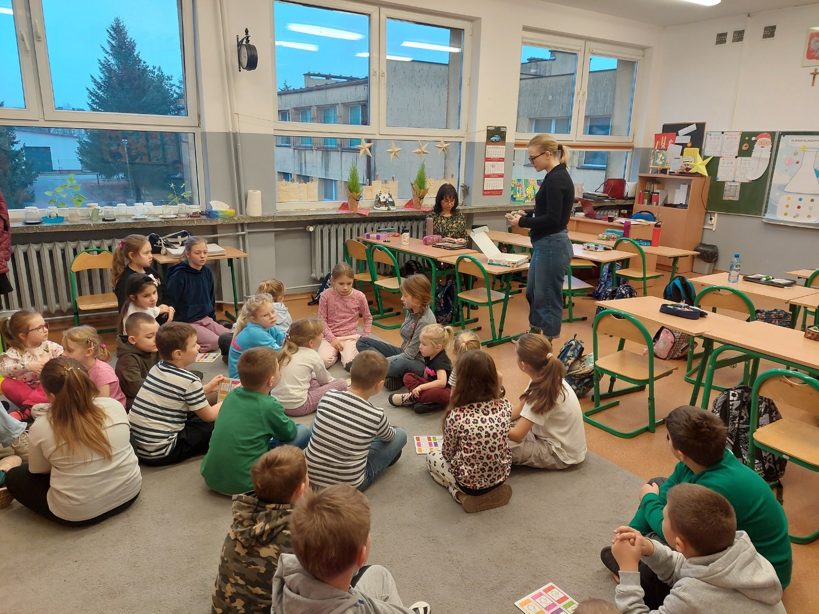 3 grudnia dzieci z grupy Koziołka Matołka odwiedziły klasę III A w Szkole Podstawowej w Margoninie, aby wziąć udział w wyjątkowych zajęciach poświęconych rozpoznawaniu i nazywaniu emocji przygotowanych przez psychologa szkolnego panią Natalię Galus. Spotkanie zostało przygotowane w formie warsztatowej, dzięki czemu maluchy mogły uczyć się poprzez doświadczenie, zabawę i rozmowę.