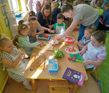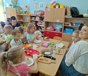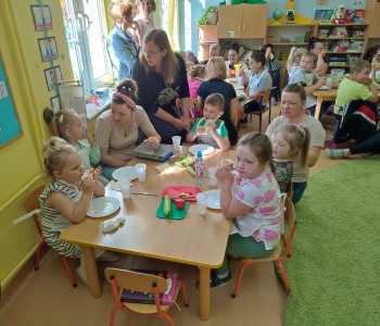 W dzisiejszych czasach nie każdy wie jak ważną rolę odgrywa śniadanie. W naszym przedszkolu w ramach zwiększenia świadomości rodziców i dzieci wdrożono program „Smyki i zdrowe smakołyki”, którego celem jest wykształcenie u dzieci postaw prozdrowotnych poprzez uczenie zasad zdrowego odżywiania. Na ostatnich zajęciach gościliśmy Panią dietetyk Magdalenę Hermaszewską oraz rodziców dzieci.