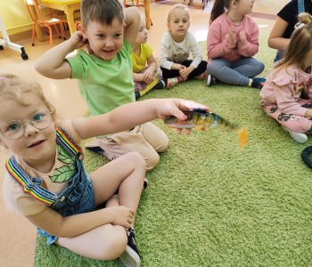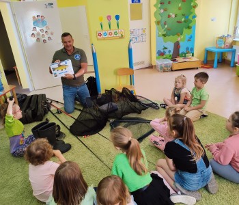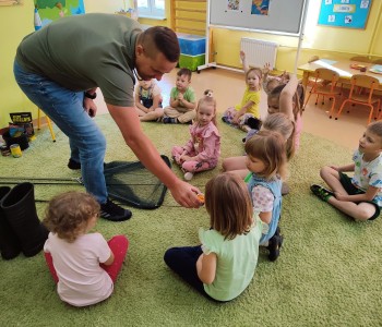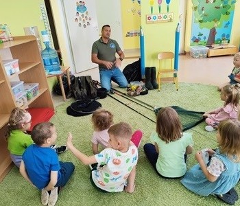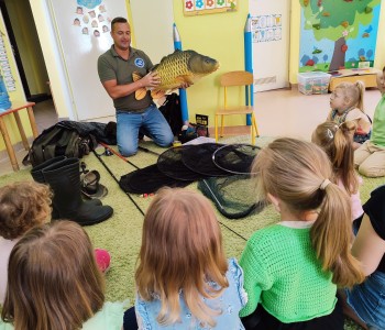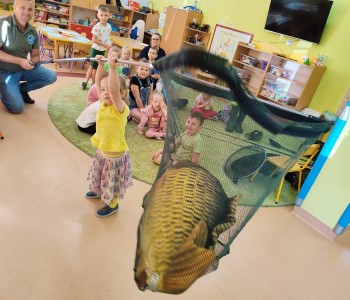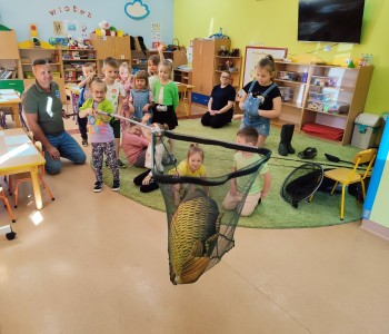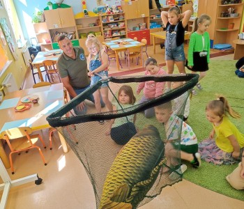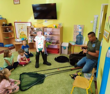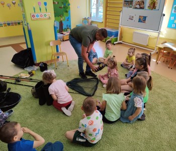 16 maja przedszkolaków z grupy Koziołka Matołka odwiedził wędkarz pan Jarosław Schlichting z Koła Polskiego Związku Wędkarskiego, który zapoznał dzieci ze specyfiką sportu wędkarskiego. Dzieci mogły obejrzeć podstawowy sprzęt wędkarski, poszerzyły wiedzę przyrodniczą na temat ryb oraz utrwaliły wiadomości na temat jak należy zachowywać się nad wodą. Każdy przedszkolak otrzymał książeczkę pt. „Ryby, rybki i rybeczki”. Bardzo dziękujemy za ciekawe spotkanie!