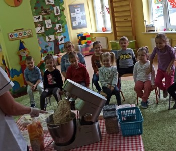 Galeria zdjęć dzieci z grupy Koziołek Matołek z pieczenia chleba