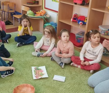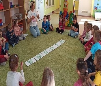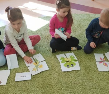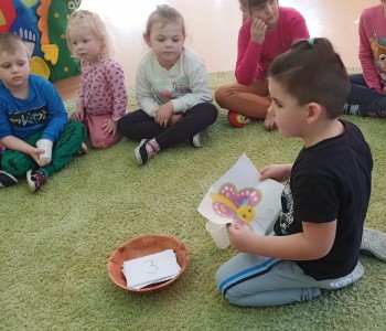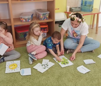 21 marca grupa Koziołka Matołka powitała wiosnę. Przedszkolaki po odnalezieniu ukrytych kopert w sali z dużym zaangażowaniem wykonywały zadania, które przygotowała dla nich Pani Wiosna.