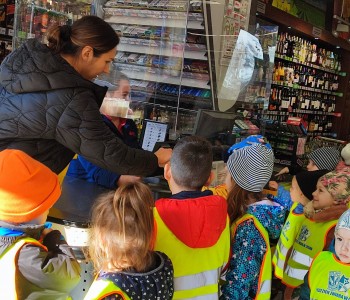 Celem wycieczki było zapoznanie dzieci z pracą ekspedientki oraz wyposażeniem sklepu. Zwróciliśmy uwagę na sposób robienia zakupów, by do naszego koszyka trafiały tylko zdrowe produkty. Wizyta w sklepie była zarówno doskonałą lekcją pod względem właściwego zachowania się w miejscu użyteczności publicznej. Na zakończenie wycieczki dokonaliśmy drobnych zakupów w postaci owoców z których zrobiliśmy pyszny koktajl w przedszkolu.