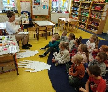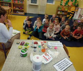 Pod takim hasłem w grupie Pszczółki Mai odbyło się spotkanie z panią pielęgniarką, na którym dzieci rozmawiały o konieczności częstego i dokładnego mycia rąk. Utrwalały kolejność wykonywanej czynności jakim jest mycie rąk. Na zakończenie spotkania dzieci wykonały wspólnie z pielęgniarką pachnące mydełka, które zabrały ze sobą do domu.