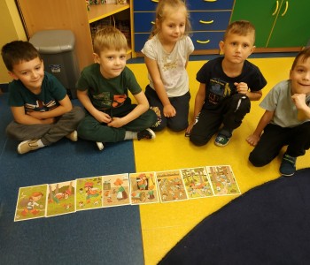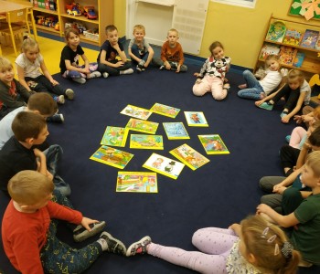 Jest to okazja do pokazania bajek zarówno tych sprzed lat, jak i współczesnych. Dzieci w tym dniu przypomniały sobie różne postacie z bajek oglądając prezentację pt. „Postacie z bajek”. Miały okazję rozwiązywać zagadki związane z różnymi bajkami, a następnie w grupach układały historyjki obrazkowe, których tematem były oczywiście bajki. Pomogły Czerwonemu Kapturkowi dojść do domku babci rysując drogę w labiryncie. Na zakończenie tego dnia dzieci wybrały się do biblioteki, gdzie wysłuchały bajki pt. „Korowód bajek”, a po wysłuchaniu opowiadania miały okazję oglądać różne książki z biblioteki oczywiście o tematyce bajkowej.