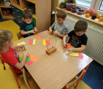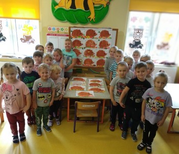 Dzieci z grupy Pszczółki Mai omawiając zwierzęta, które można spotkać w lesie lub w parku poznały budowę jeża, dowiedziały się co lubi jeść i jak przygotowuje się do nadejścia zimy.