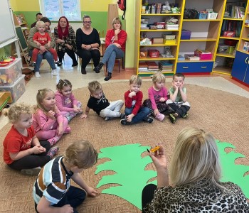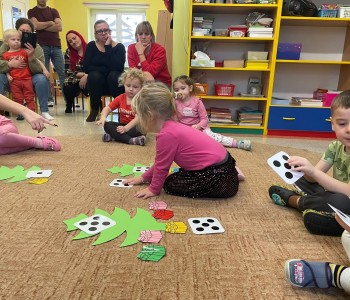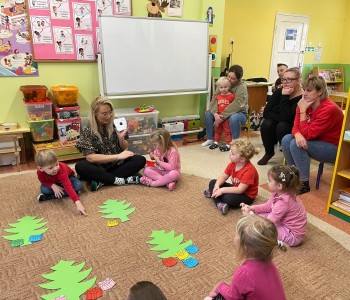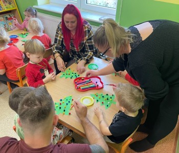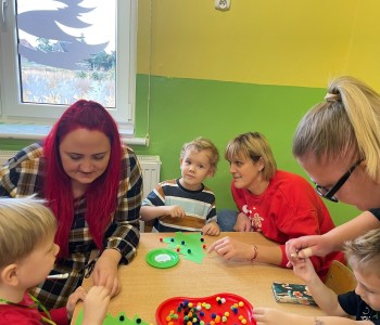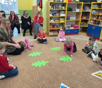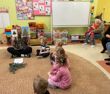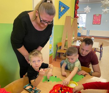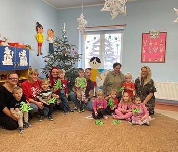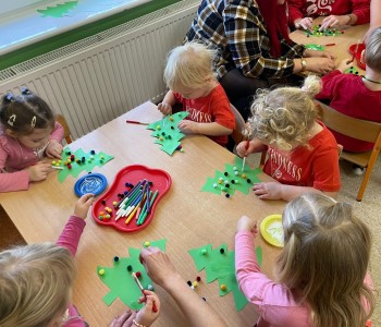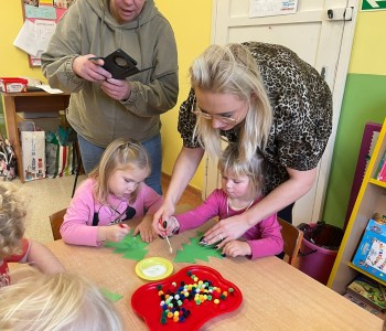 W piątek 13 grudnia w grupie Bolka i Lolka odbyły się zajęcia otwarte dla rodziców pt. „Kolorowa choinka”. Zajęcie rozpoczęło się od zagadki, dzieci miały możliwość dotknąć, powąchać gałązkę i musiały odgadnąć co to jest, z jakiego drzewka pochodzi gałązka – oczywiście rozwiązaniem zagadki była choinka. Dzieci pokazały na zajęciu swoim rodzicom, jakich umiejętności nauczyły się już w przedszkolu.