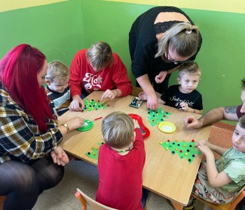 Dzieci z grupy Bolka i Lolka doskonale radziły sobie podczas zajęcia na segregowaniu ozdób choinkowych oraz ich nazywaniu i dzieleniu wyrazów na sylaby. Dzieci doskonale radziły sobie z przeliczaniem elementów w zakresie od 3 do 5. Wspólnie śpiewaliśmy i bawiliśmy się przy piosence „Wkoło choinki”. Na zakończenie zajęcia każde dziecko wykonało z rodzicem kolorową choinkę. Dziękujemy Rodzicom za obecność na zajęciu otwartym i zapraszamy na kolejne spotkania w naszej sali.