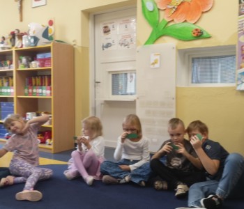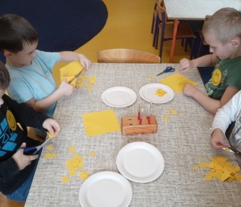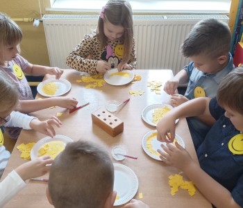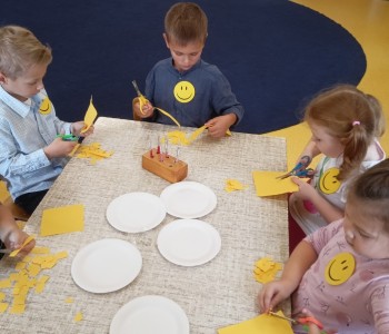 Zabawy 4 października miały każdego przedszkolaka wprawić w dobry nastrój i wywołać dużo uśmiechu na twarzy. Każdy przedszkolak wykonał wesołą emotkę, która miała przypominać dzieciom o uśmiechaniu się. Doskonaliliśmy również umiejętność rozpoznawania i nazywania innych uczuć.