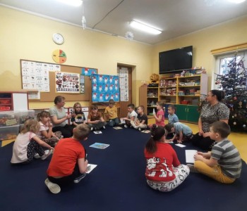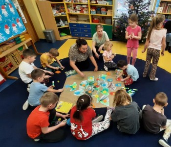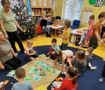 W czwartek 12 grudnia dzieci z grupy Pszczółki Mai gościły na zajęciu swoich rodziców. Podczas zajęcia dzieci dobrane parami układały pocięte obrazki w całość, a następnie opisały co jest na obrazkach, podzieliły się również swoją wiedzą na temat tradycji Świąt Bożego Narodzenia.