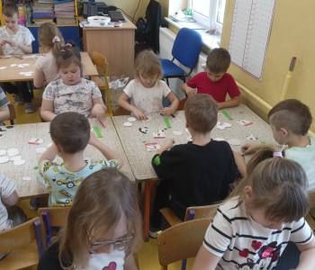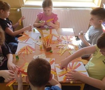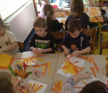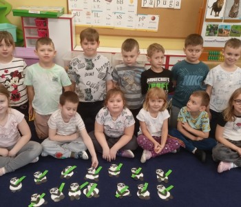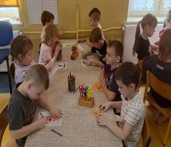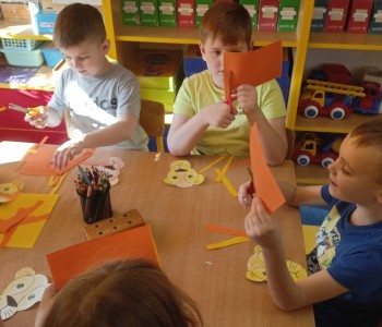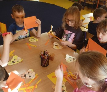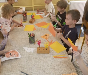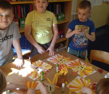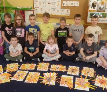 Realizując temat o zwierzętach egzotycznych dzieci z grupy Pszczółki Mai usystematyzowały sobie wiadomości o różnych zwierzętach. Poznały miejsca, gdzie występują poszczególne gatunki zwierząt. Śpiewały i bawiły się przy piosence „Podróż do dżungli”. Podczas prac plastycznych wykonały portret lwa i postać pandy.