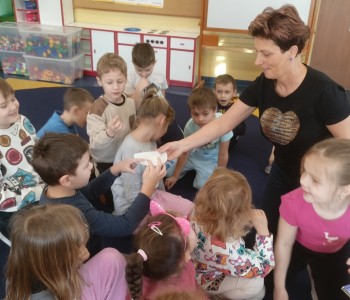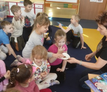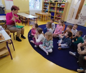 Podczas zajęć z panią pielęgniarką dzieci z grupy Pszczółki Mai rozmawiały o zmysłach oraz narządach zmysłu, które są odpowiedzialne za ich odczuwanie. Dzieci poznały zmysł wzroku, słuchu, dotyku, smaku i węchu. Dzięki zabawom badawczym dzieci dowiedziały się jak ważne dla poznawania świata są zmysły.