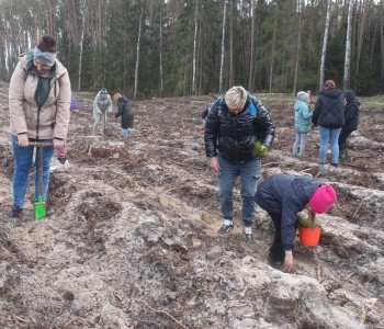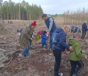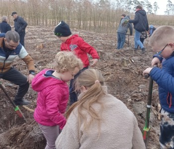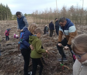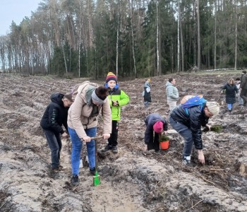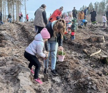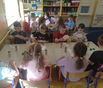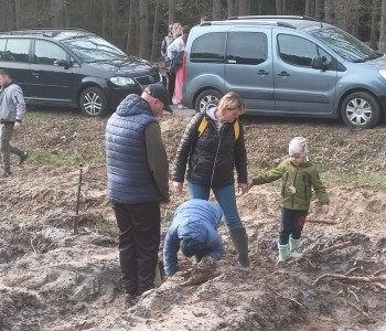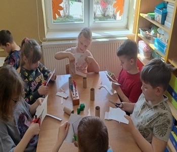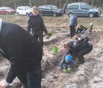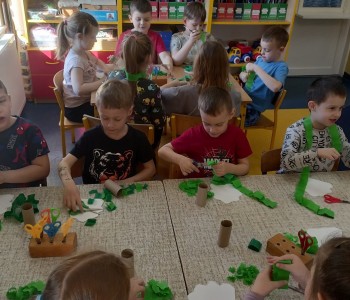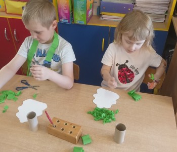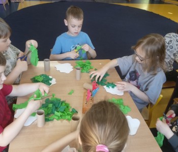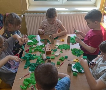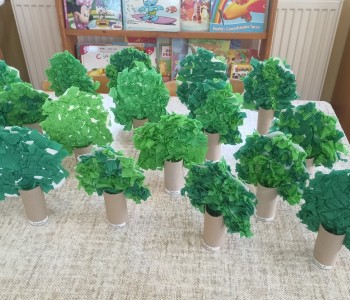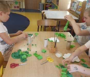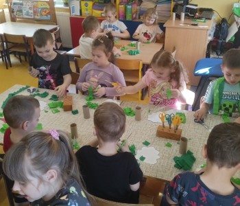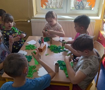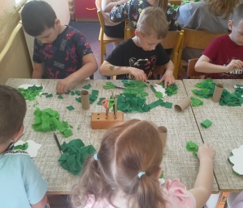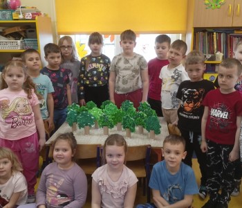 Podczas pobytu w przedszkolu zrobiły wspólnie mały las wykonując drzewka wykorzystując rolki po papierze i zieloną krepę. Po południu niektórzy przedszkolacy razem ze swoimi rodzicami udały się do lasu, aby wspólnie posadzić las.