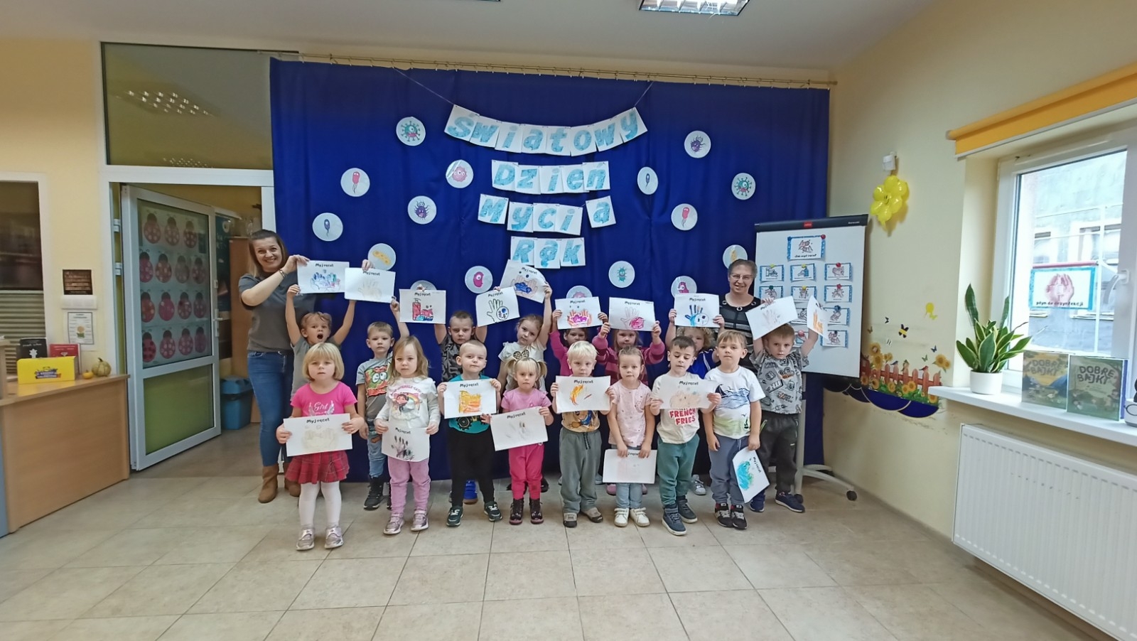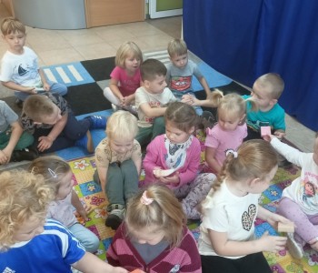 Utrwalały kolejność wykonywanej czynności jakim jest mycie rąk. Zobaczyły różne rodzaje mydeł, opisywały ich wygląd i zapach. Dzieci dowiedziały się o zarazkach, bakteriach i wirusach, które dostają się do naszego organizmu poprzez brudne ręce. Miały okazję zobaczyć doświadczenie, które pokazywało jak wirusy uciekają przed mydłem. Na zakończenie spotkania dzieci pokolorowały obrazki, które również będą przypominały dzieciom o myciu rąk.
