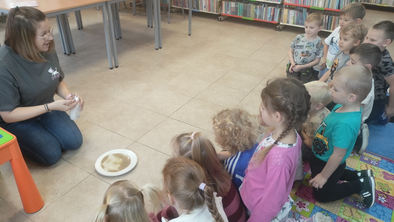 Miesiąc październik to miesiąc, w którym obchodzony jest Światowy Dzień Mycia Rąk, dlatego dzieci z grupy Pszczółki Mai udały się do Biblioteki w Radwankach gdzie dowiedziały się o konieczności częstego i dokładnego mycia rąk. Wysłuchały opowiadania pt. „Fenek myje ręce” , z którego dowiedziały się kiedy należy myć ręce.