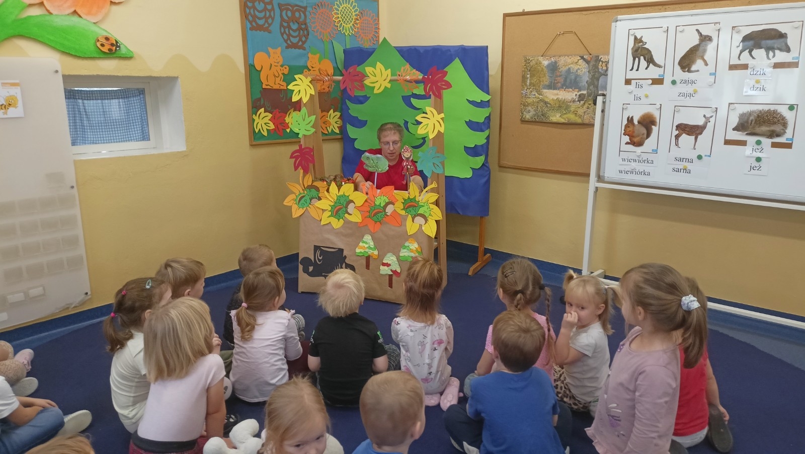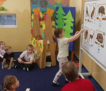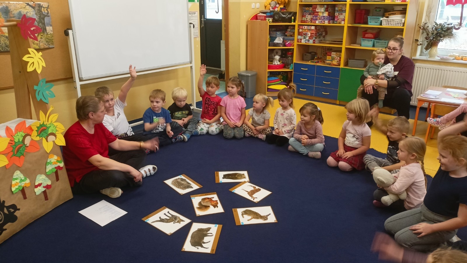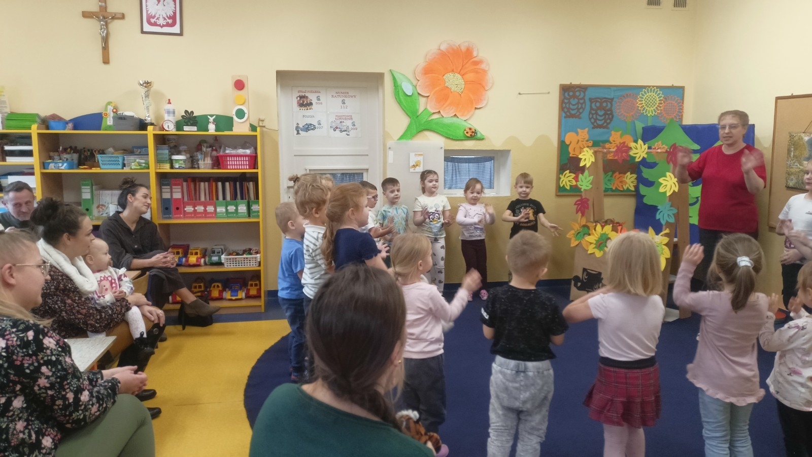 W ramach współpracy przedszkola z rodzicami 20 listopada w grupie Pszczółki Mai odbyło się zajęcie otwarte, które pozwoliło rodzicom obserwować swoje dziecko na tle grupy. Realizując temat kompleksowy o przygotowaniach do zimy dzieci z grupy Pszczółki Mai podczas teatrzyku sylwet dowiedziały się jak zwierzęta przygotowują się do zimy (gromadzenie zapasów na zimę, zasypianie zwierząt).