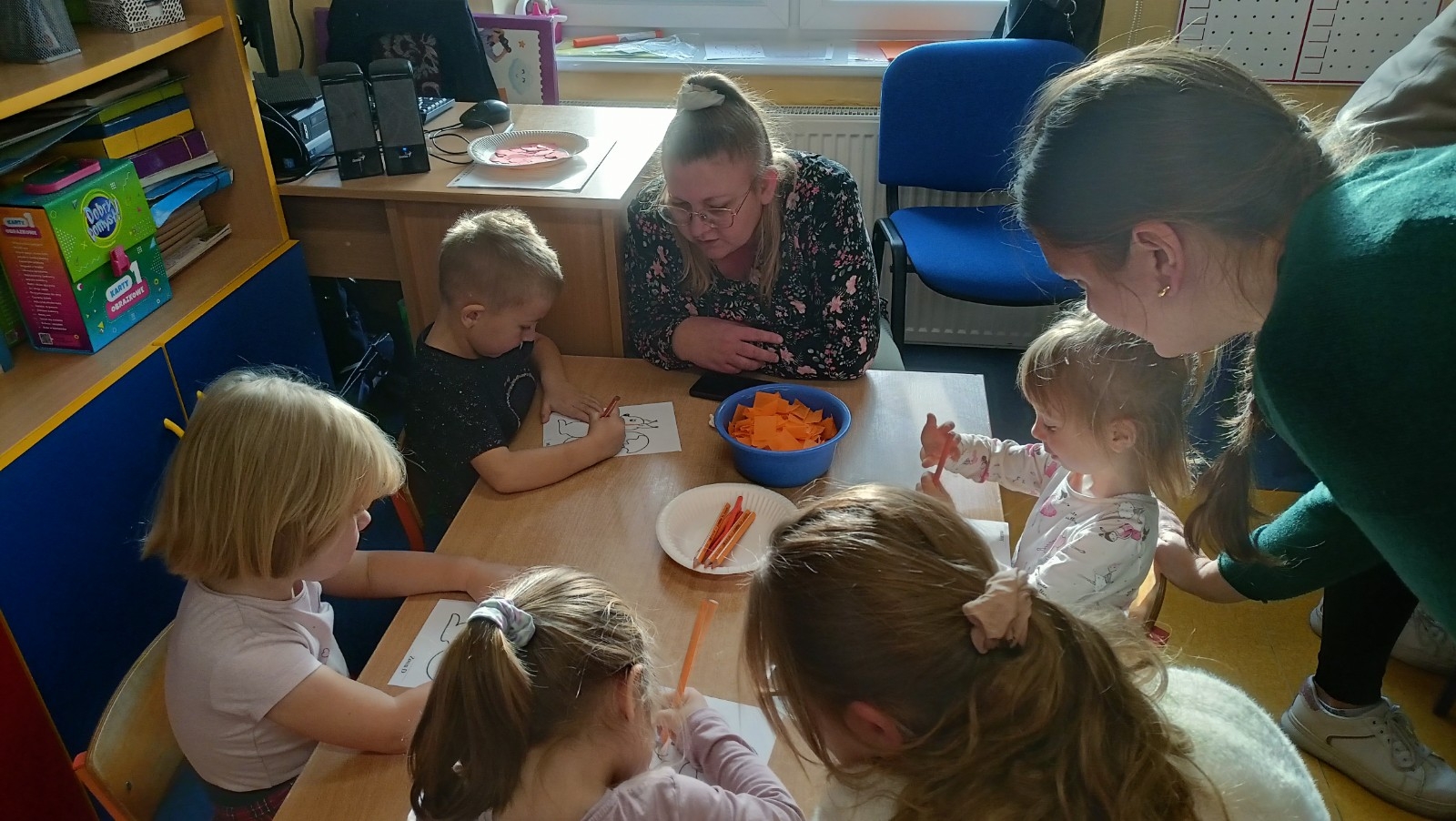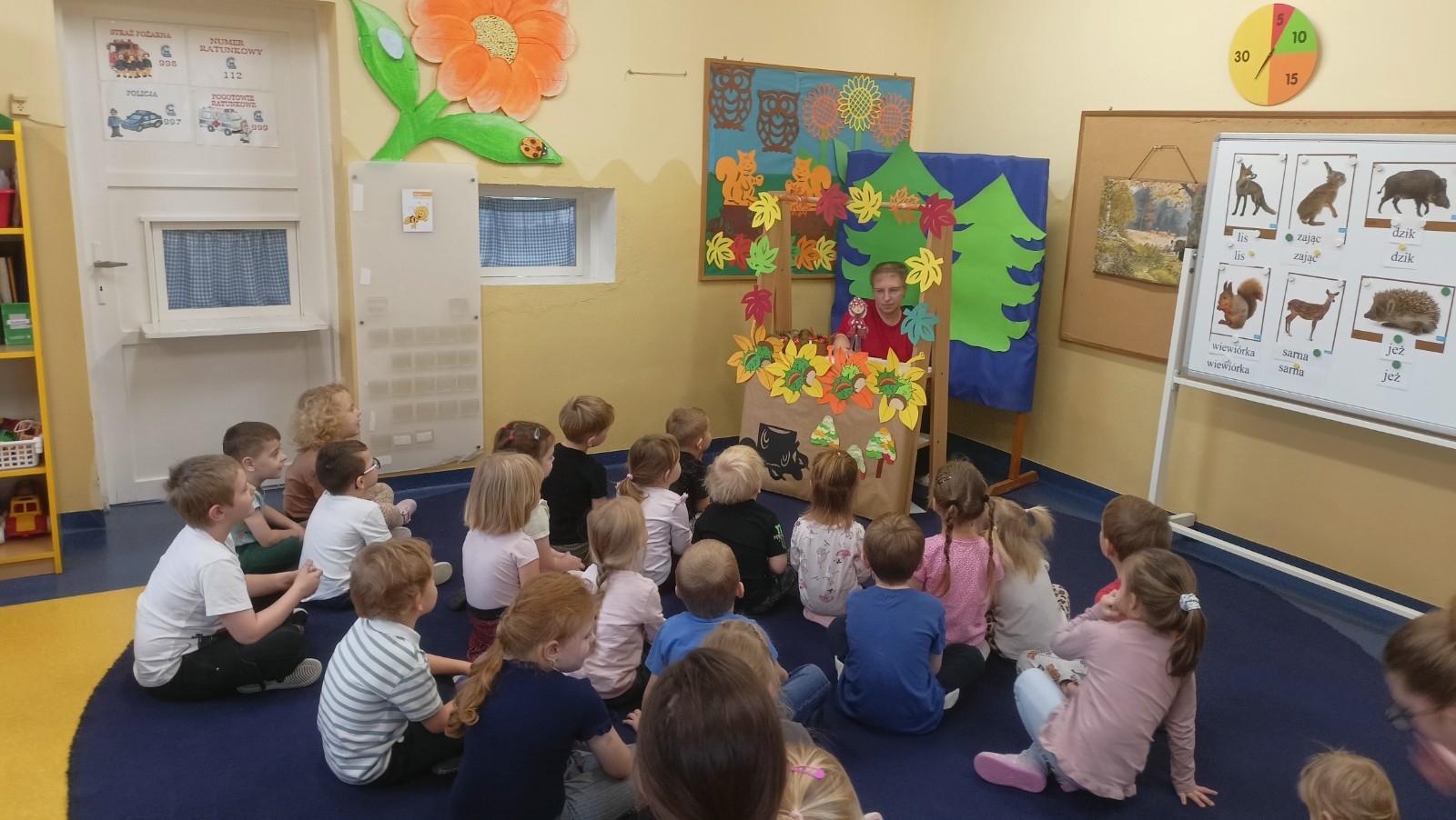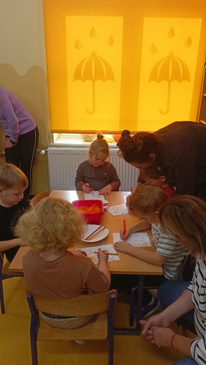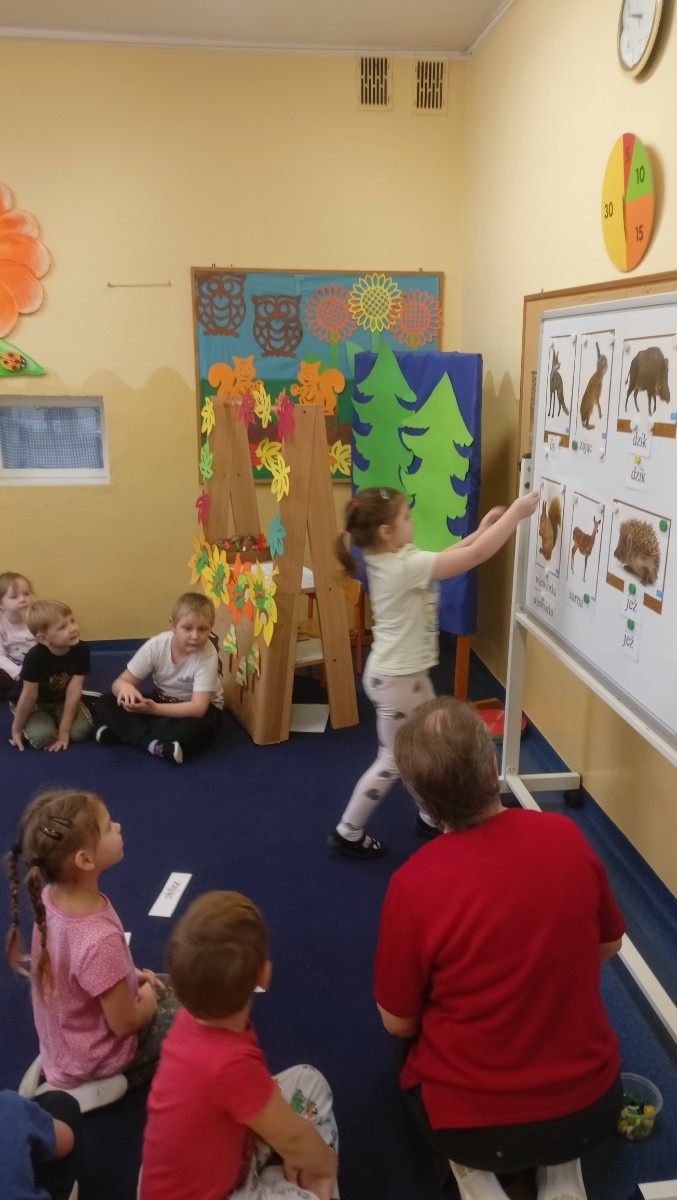 W ramach współpracy przedszkola z rodzicami 20 listopada w grupie Pszczółki Mai odbyło się zajęcie otwarte, które pozwoliło rodzicom obserwować swoje dziecko na tle grupy. Realizując temat kompleksowy o przygotowaniach do zimy dzieci z grupy Pszczółki Mai podczas teatrzyku sylwet dowiedziały się jak zwierzęta przygotowują się do zimy (gromadzenie zapasów na zimę, zasypianie zwierząt).