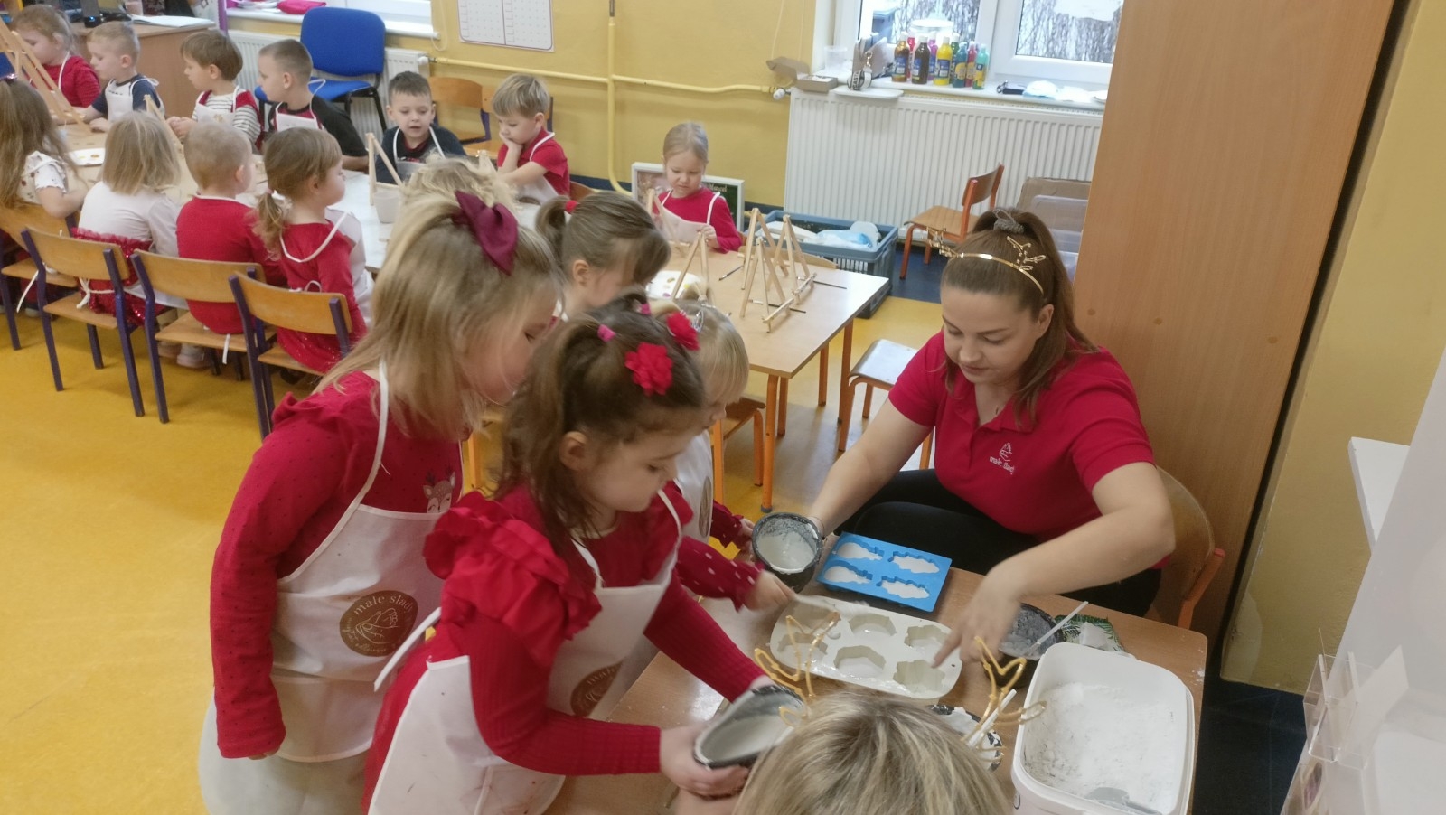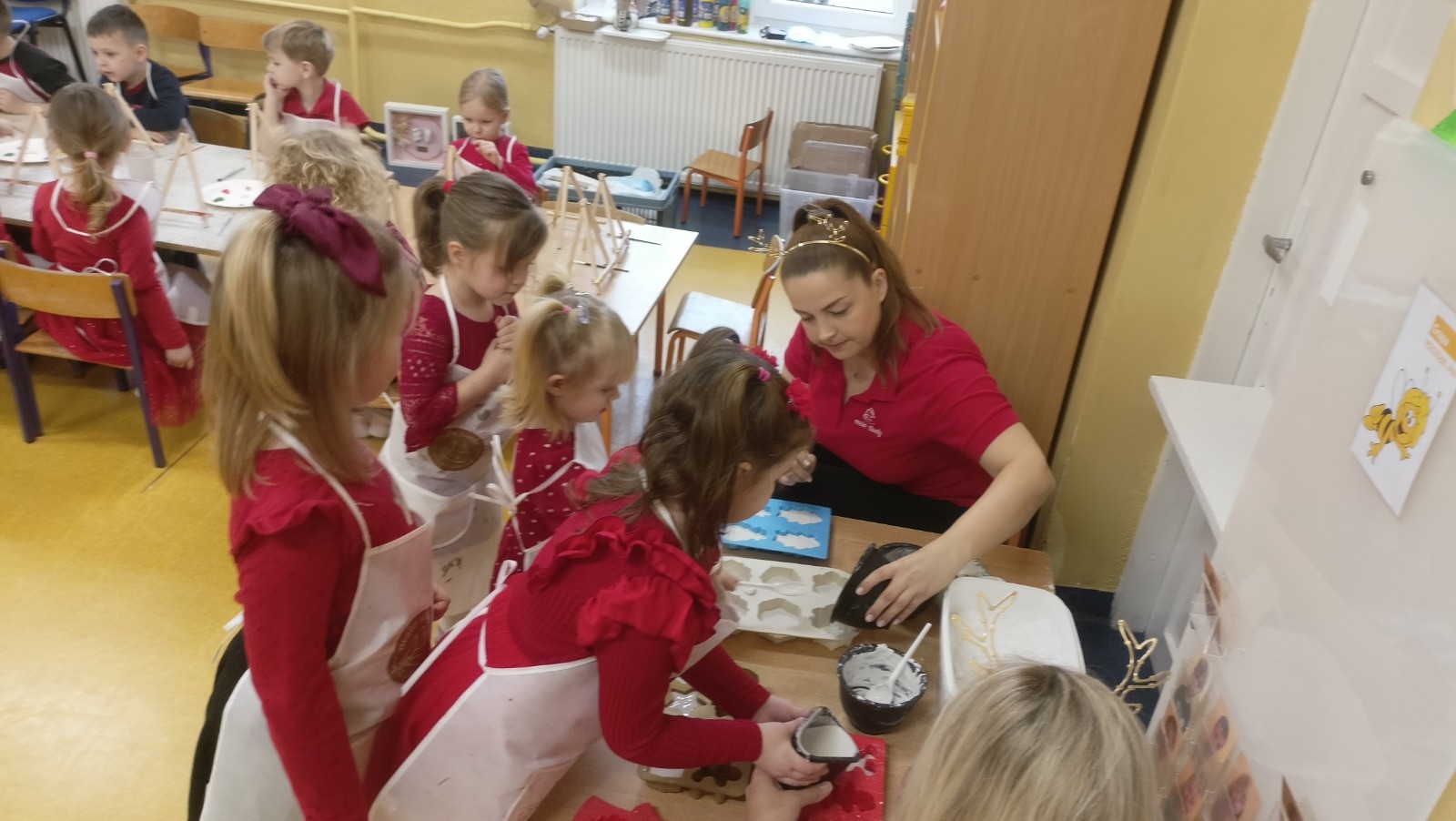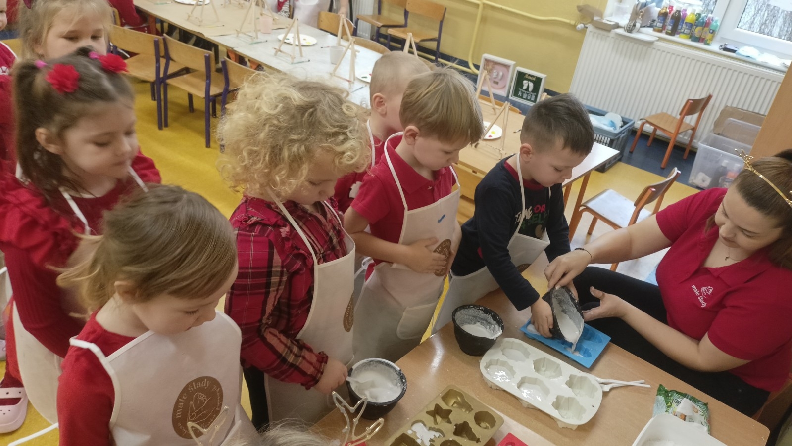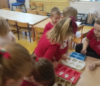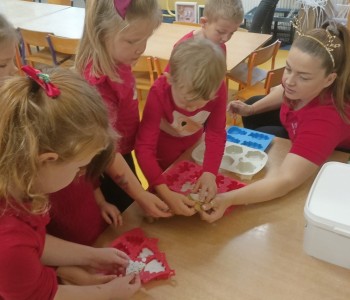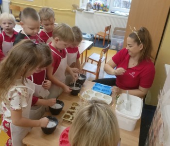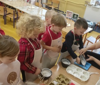 W piątek 5 grudnia w grupie Pszczółki Mai odbyły się kreatywne, świąteczne warsztaty z gipsem. Podczas warsztatów dzieci poznały sztukę odlewania gipsem i miały okazję zobaczyć gotowe odlewy. Dzieci samodzielnie stworzyły gipsowe figurki, a następnie pomalowały i ozdobiły gotowe już figurki Mikołajów.