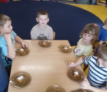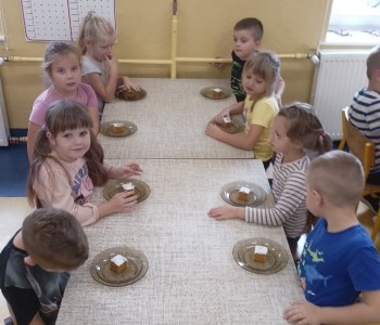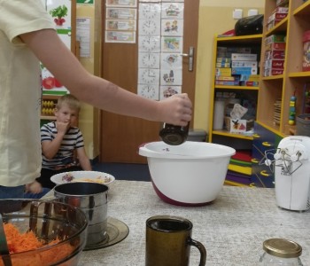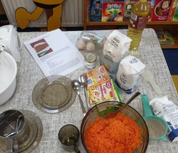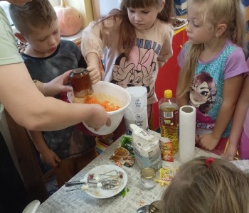 Podczas jesiennych zajęć dydaktycznych dzieci miały okazję pogłębiać swoją wiedzę dotyczącą warzyw. Przedszkolaki rozpoznawały za pomocą węchu i dotyku smakowite warzywa, a także poznały zasady zdrowego odżywiania. Podczas warzywnego tygodnia dzieci smakowały warzywa. Miały okazję spróbować paprykę, rzodkiewkę, pomidora, ogórka i oczywiście marchewkę. Dzieci także miały możliwość rozwijania się w sztuce kulinarnej – wspólnie przygotowaliśmy ciasto marchewkowe, które po upieczeniu bardzo szybko zniknęło, wszystkim bardzo smakowało.
