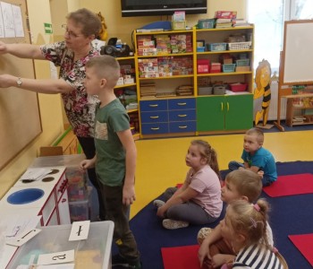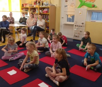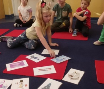 W ramach współpracy przedszkola z rodzicami 5 grudnia w grupie Pszczółki Mai odbyło się zajęcie otwarte, które pozwoliło rodzicom obserwować swoje dziecko na tle grupy. Zadaniem dzieci podczas zajęcia było rozwiązywanie różnych zadań od Świętego Mikołaja. Na początku zajęcia dzieci rozwiązywały zagadki słowne o zimie i symbolach świątecznych oraz dzieliły wyrazy na sylaby i wyodrębniały głoski w nagłosie i wygłosie wyrazów.