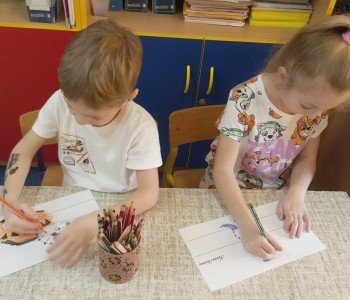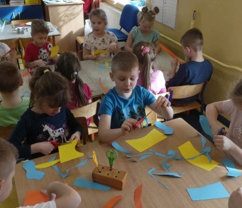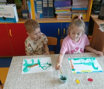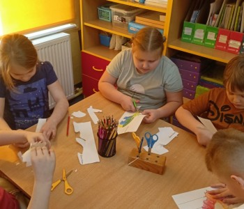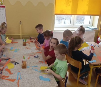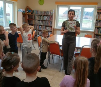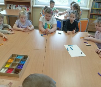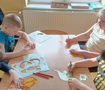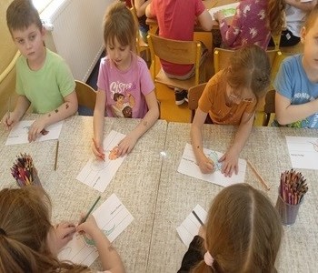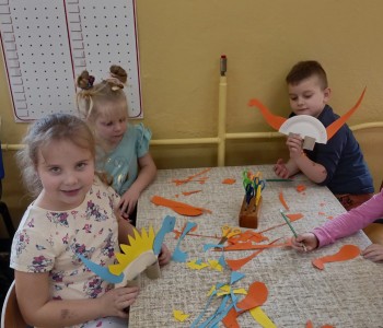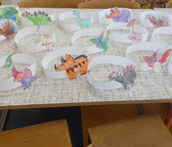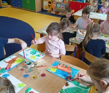 Podczas zajęć plastycznych malowały dinozaury farbami plakatowymi, wykonały sobie opaski z wizerunkiem dinozaura, a na koniec wykonały własnego diplodoka i triceratopsa. Swoją wiedzę o dinozaurach dzieci pogłębiły podczas wizyty w Bibliotece w Radwankach, gdzie pani bibliotekarka pokazała dzieciom albumy o wymarłych gadach i przeczytała bajkę pt. „Dobry Dinozaur” . Na koniec dzieci ulepiły z plasteliny figurki dinozaurów. Zajęcia z pewnością pogłębiły wiedzę dzieci, a u niektórych rozbudziły nową pasję.