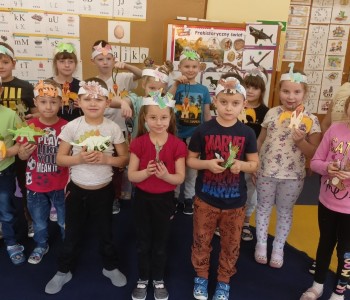 Wszystkie dzieci zafascynowane są światem dinozaurów, dlatego ostatni tydzień był dla przedszkolaków z grupy Pszczółki Mai wspaniałą przygodą. Dzieci słuchały opowieści, oglądały programy edukacyjne, książki przyrodnicze oraz prezentacje multimedialną - dzięki temu poznały fakty z życia wielkich gadów jak również poznały pracę paleontologa. Dzieci uczestniczyły w różnorodnych zabawach i działaniach. Podczas zabaw ruchowych wcielały się w postacie dinozaurów.