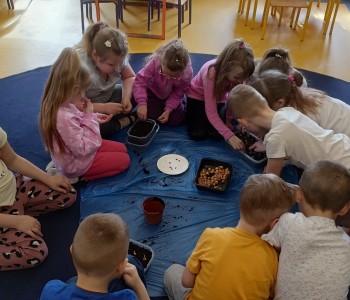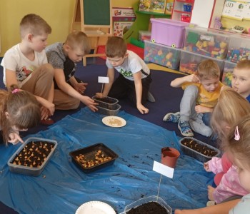 Dzieci z niecierpliwością czekają na nadejście wiosny i postanowiły ją trochę przyśpieszyć. Starszacy postanowili założyć w swojej sali wiosenny ogródek więc zamienili się w małych ogrodników. Samodzielnie wysiały nasiona rzeżuchy i zboża oraz posadziły fasolę, groch i cebulę. Dzieci wiedzą, że do rozwoju roślin potrzebna jest woda i słońce, dlatego doniczki zostały ustawione na parapecie. Teraz z niecierpliwością czekają na pierwsze kiełkujące rośliny.