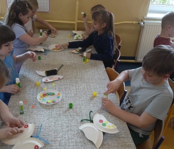 Podczas zajęć dzieci z grupy Pszczółki Mai poznały różne gatunki motyli oraz dowiedziały się jak przebiega cykl rozwojowy motyla. Następnie wykonały kolorowe motyle wykorzystując rolki po papierze, druciki kreatywne oraz talerzyki papierowe.