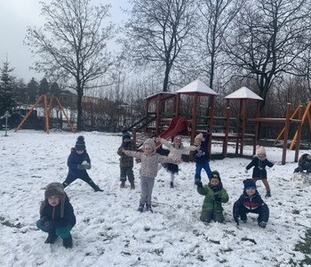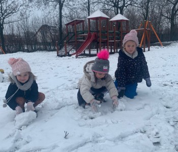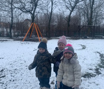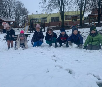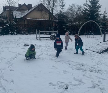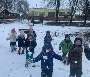 Hu! Hu! Ha! Nasza zima! Szczypie w nosy, szczypie w uszy. Mroźnym śniegiem w oczy prószy, a my jej się nie boimy. Dalej śnieżkiem w plecy zimy, niech pamiątkę ma!