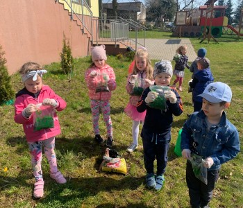 Nasze przedszkolaki także uczą się, jak żyć ekologicznie, szczególnie zastanawiały się jak chronić nasz wspólny dom – Ziemię, jak pomóc naszej planecie! Grupa Reksia założyła również hodowlę roślin. Przed przystąpieniem do pracy dzieci poznały warunki potrzebne roślinom do wzrostu. Następnie siały rzeżuchę, szczypiorek, pietruszkę, zioła oraz sadziły cebulkę na szczypiorek i różne kwiaty. Po zasianiu i podlaniu, rośliny zostały umieszczone w kąciku przyrody.