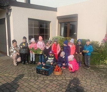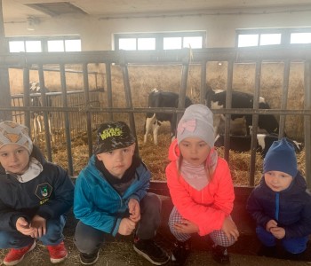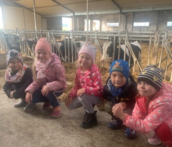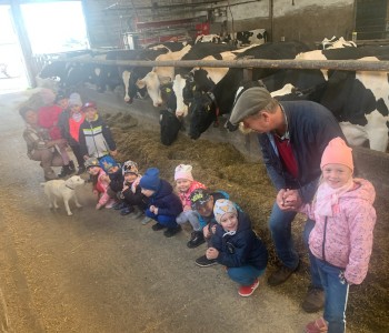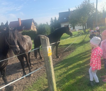 Dzięki uprzejmości pani Bernadety i pana Eugeniusza dzieci z grupy „Reksia” wybrały się na wycieczkę do gospodarstwa rolnego. Przedszkolaki miały niepowtarzalną okazję, aby zobaczyć, jak wygląda stodoła, obora, kurnik. Milusińscy z wielką uwagą słuchały o hodowli krów. Gospodarze pokazali przedszkolakom niezbędne do pracy narzędzia i maszyny jakich używają. Pani Bernadeta przygotowała niespodzianki z ogrodu. Były to warzywa, owoce oraz zioła. Dzieci utrwaliły sobie części jadalne i niejadalne różnych gatunków warzyw i uświadomiły sobie, jak ważne jest zdrowe odżywianie. Dzieci jednogłośnie uznały, że wycieczka była wspaniała, a kącik przyrody w sali wzbogacił się o dary z ogrodu. Serdecznie dziękujemy za miłe przyjęcie i poświęcony czas!