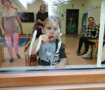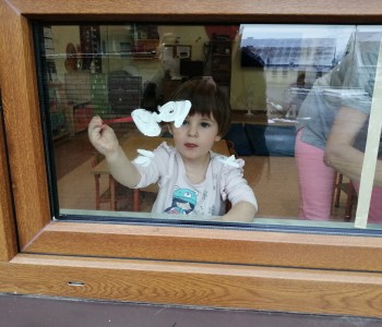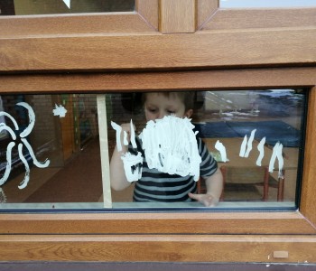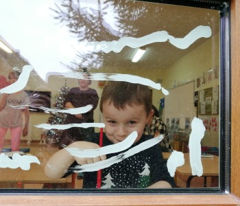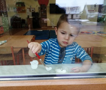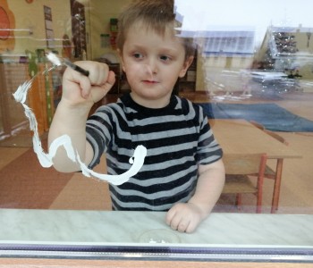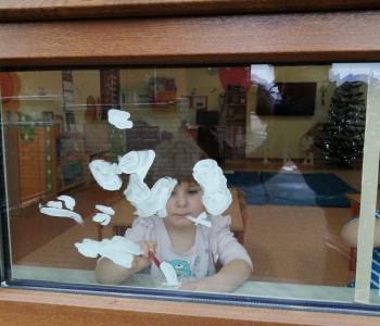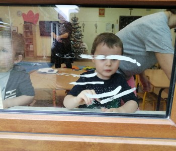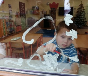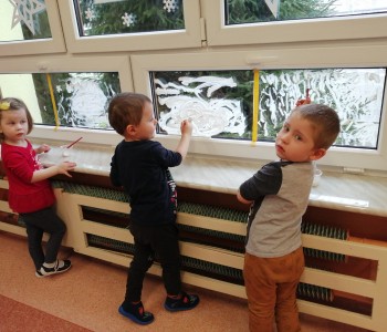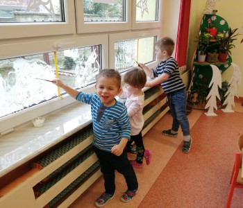 w małe gwiazdki i palmowe liście.” Malowanie po szkle jest niezwykle inspirującym elementem działalności plastycznej, który zapewnia ogrom możliwości, jak również posiada dużą ilość korzyści dla małych artystów. Pozwala dzieciom na wspaniałe odprężenie się i zrelaksowanie, a jednocześnie zapewnia im ciekawą i angażującą rozrywkę, która będzie stanowiła wspaniałą odmianę od standardowego rysowania lub malowania. Malowanie na szkle rozwija wyobraźnię i kreatywność dzieci oraz uczy je pracy z nowym materiałem. Przedszkolaki z grupy „Smerfów” zobaczyły jak mróz maluje piękne wzory na szybach, a następnie przystąpiły do pracy: samodzielnie ozdobiły szyby w naszej sali pięknymi zimowymi wzorami. Sami oceńcie kto piękniej ozdobił szyby: mróz czy nasze Smerfy?