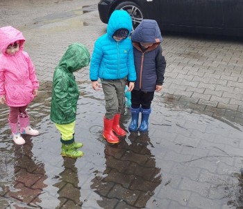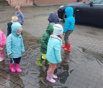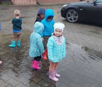 Dzieci z grupy Smerfów wykorzystały deszczowy czwartek, aby sprawdzić czy ich kalosze wytrzymają te próbę.