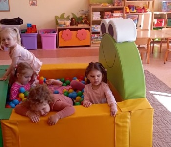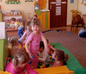 W zeszłym tygodniu dzieci z grupy Smerfów miały okazję pobawić się w basenie z kulkami. Takie zabawy mają na celu rozwijanie umiejętności manualnych oraz usprawniają koordynację wzrokowo-ruchową.