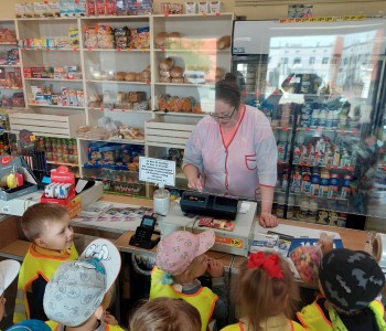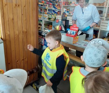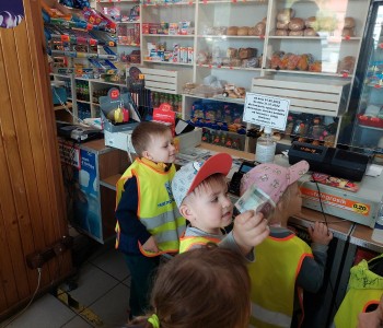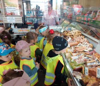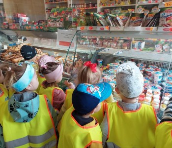 Dzieci z grupy Smerfów wybrały się na wycieczkę do pobliskiego sklepu w ramach tematu kompleksowego „Poznajemy zawody”.