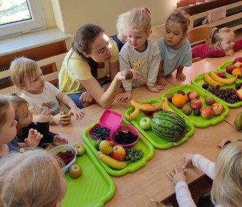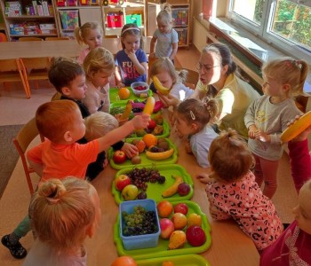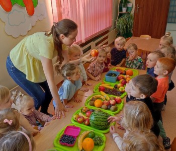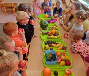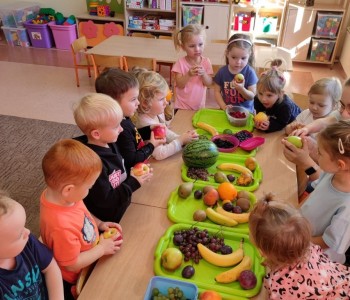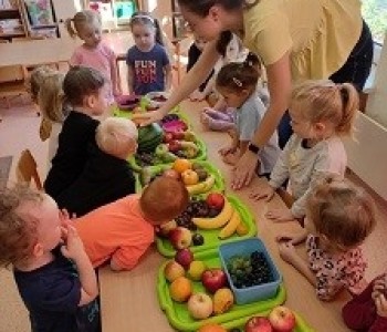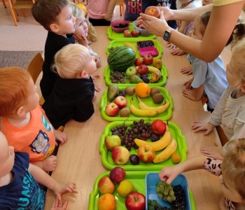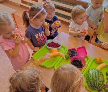 W ubiegłym tygodniu dzieci z grupy Smerfy realizowały tematy związane z jesienią goszcząca w sadzie. W ramach realizowanych zadań dzieci poznały owoce poprzez zmysły. Po poznaniu nazwy każdego z owoców, dotykały je, wąchały i oglądały. Na zakończenie dzieci miały okazję posmakować wszystkich zgromadzonych owoców.