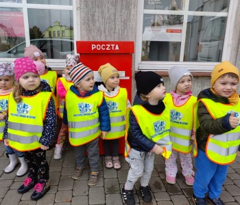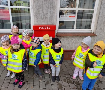 Dzieci z grupy Smerfy udały się na spacer do Urzędu Pocztowego. Wizyta ta pozwoliła dzieciom poznać wygląd budynku na zewnątrz, jak i wewnątrz. Ponadto dzieci dowiedziały się na czym polega praca urzędnika pocztowego. Na koniec Smerfy odnalazły czerwoną skrzynkę i poznały jej zastosowanie.