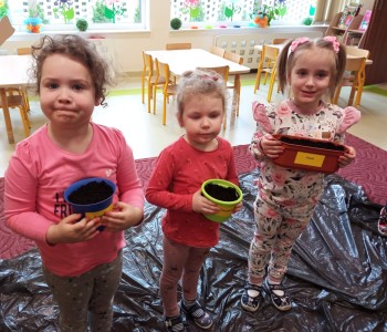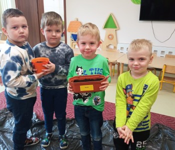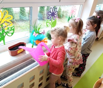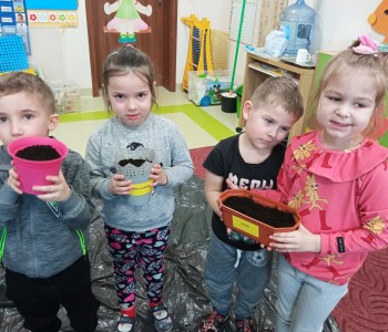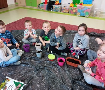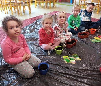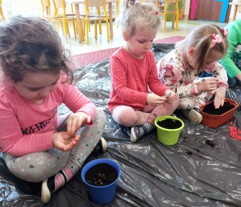 Dzieci z grupy Wróbelka Elemelka poznały warunki potrzebne roślinom do wzrostu, a następnie przystąpiły do założenia wiosennej hodowli. Przedszkolaki wysiewały do doniczek nasiona szczypiorku, rzodkiewki, sadziły cebulki, fasolkę oraz groch. Założone hodowle wzbogaciły kącik przyrody, który stał się miejscem do obserwacji kolejnych etapów wzrostu roślin.