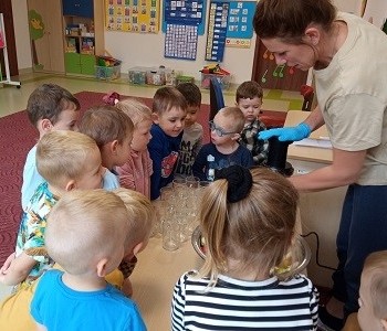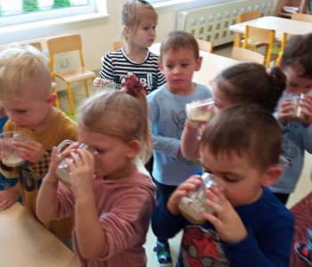 Wróbelki postanowiły sprawdzić jak wyczarować pyszny sok z owoców bez dodatku cukru i konserwantów. Jednak zanim przystąpiliśmy do pracy, przedszkolaki zapoznały się z urządzeniem do robienia soku – sokowirówką, jego działaniem oraz utrwaliły podstawowe zasady higieny i bezpieczeństwa. Pozostało tylko wrzucenie składników do sokowirówki i sok gotowy!